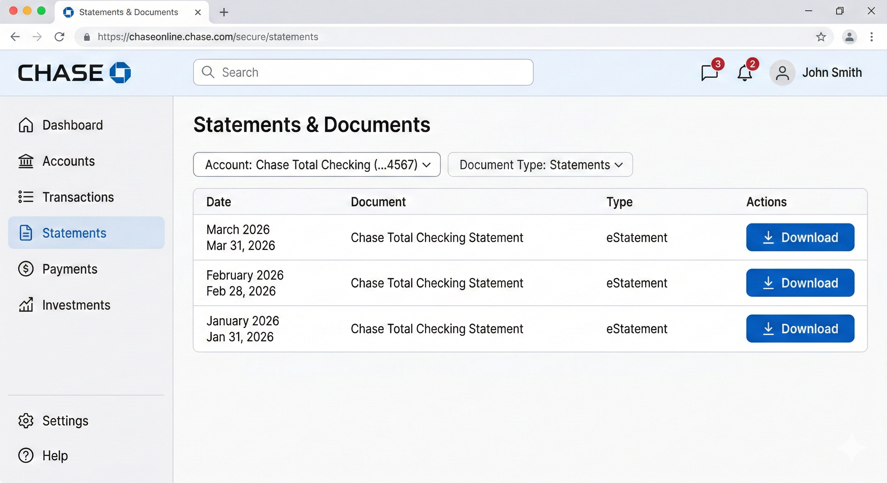 If you already have your statement PDF, skip to Step 2. Otherwise, here's how to get it from Chase:
